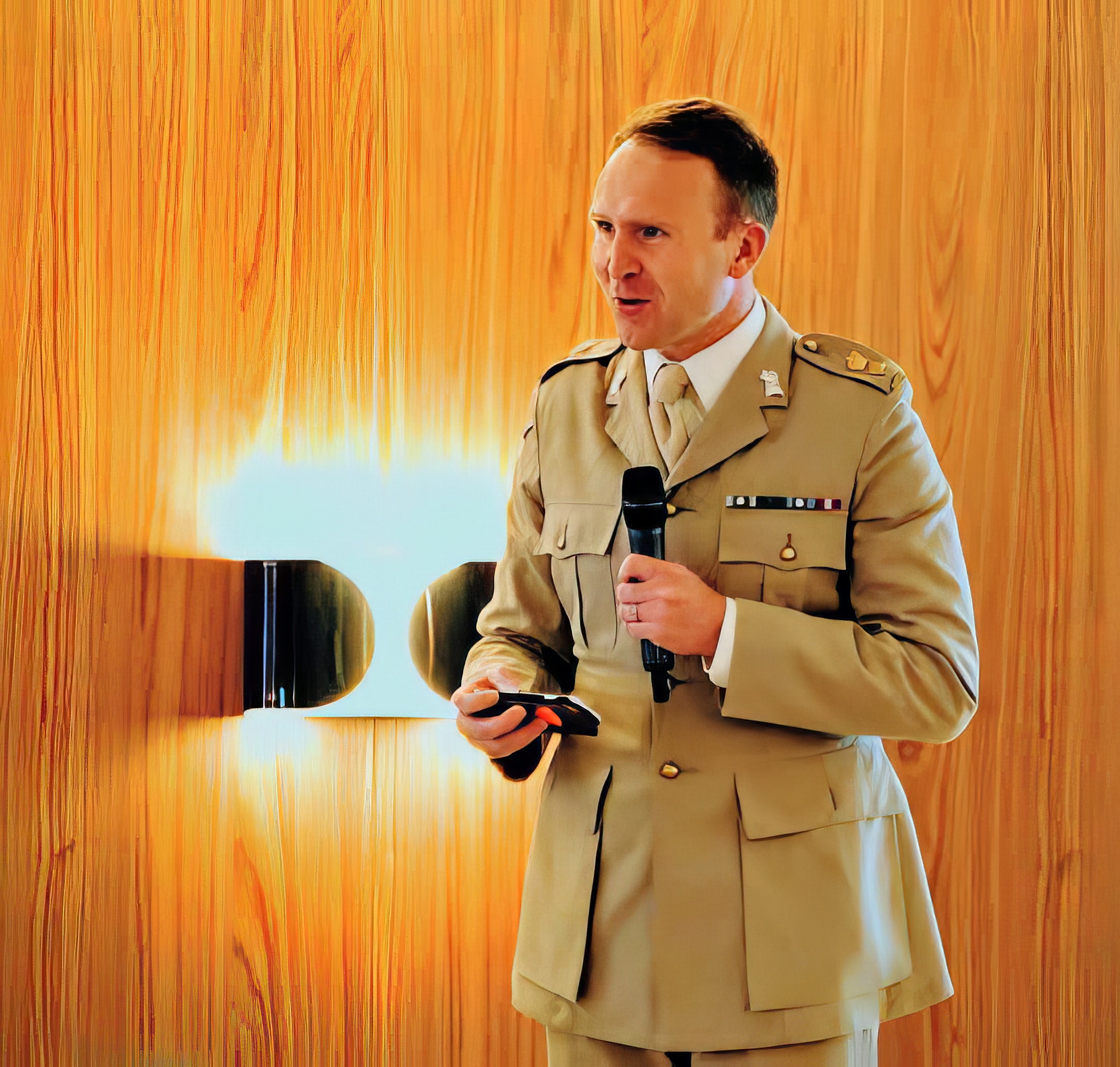 Speaking on behalf of the jury, the Rev. Lt.Col. Janne Aalto from Finland stated in Budapest: “In his excellent master’s thesis, LtCol Matthew Fyjis-Walker brings up topics that are very familiar to many of us. Or at least they should be, because I dare say that anyone who works for the armed forces or in the field of security policy has bumped into practises thoroughly specified by him in his final paper. Whether we recognise sanitized language ourselves and, first and foremost- whether we use it ourselves is a different story. Either on purpose or without giving it too much thought- repeating terms we have learned without thinking about their actual meaning. (…) What makes LtCol Fyjis-Walker’s master’s thesis such a fine piece of academic work derives from the fact that he shows where the slight difference in the use of expressions leads to. His paper departs from the statement that “sanitised language is not a well-defined class of vocabulary. It’s composed of language that seeks to clean up the appearance of events. Sanitised language’s tools include abstract terms, euphemisms that stretch social norms, the dulling of emotional content, and obscuration of difficult issues”.