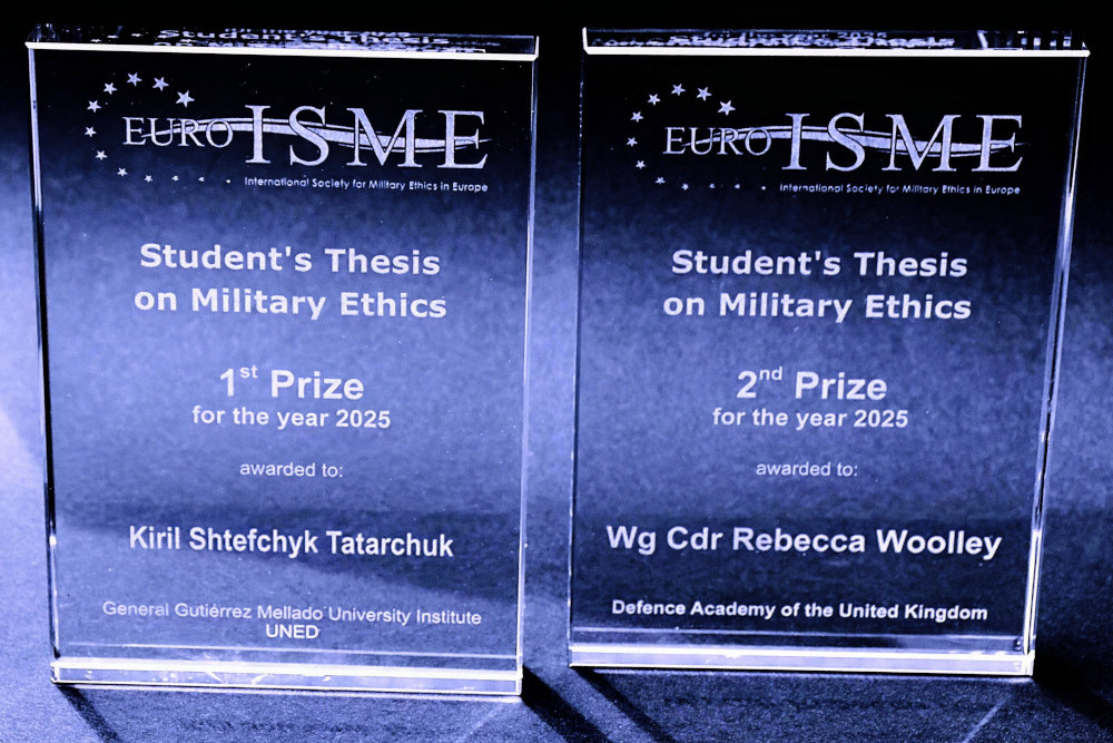 EuroISME gratuliert Kiril Shtefchyk Tatarchuk aus der Ukraine zum Gewinn des ersten Preises im jährlichen EuroISME-Wettbewerb für die beste studentische Abschlussarbeit (MA). Er schrieb seine Arbeit zum Thema „Russlands Krieg in der Ukraine: eine Perspektive aus der Theorie des gerechten Krieges“ am Universitätsinstitut General Gutiérrez Mellado in Madrid. Wir gratulieren auch Wing Commander Rebecca Woolley aus dem Vereinigten Königreich, die den zweiten Preis im jährlichen Wettbewerb für die beste europäische Masterarbeit über die Ethik von Krieg und Frieden gewonnen hat. Read more